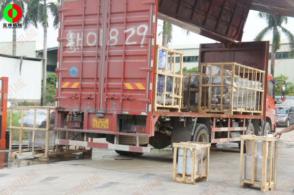 客戶訂購的一批各類蔬果加工機械,包括渦流洗菜機,切菜機,姜絲機,氣泡洗菜機,新款多功能洗菜機等等,按時裝車發貨交付客戶!