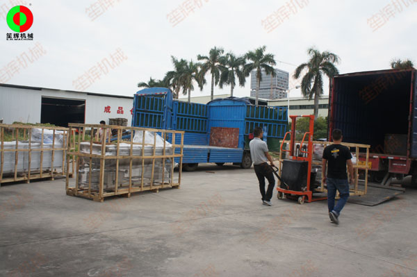 兩貨車蔬果加工機械設備發貨交付客戶!設備包括多套凈菜加工處理設備,按時按質發貨交付!