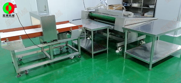 珠海JTW客戶訂購的二期設備交付安裝現場!前不久,我司為其量身訂制了一條針對香菜、蔥蒜、韭菜加工配送的無損清洗線,搭配我司純氧源臭氧殺菌提取器和制冷清洗保鮮機組。本次客戶追加了產品金屬檢測排除和成品真空包裝方面的設備需求,我司派遣售后工程人員上門安裝并指導操作應用!