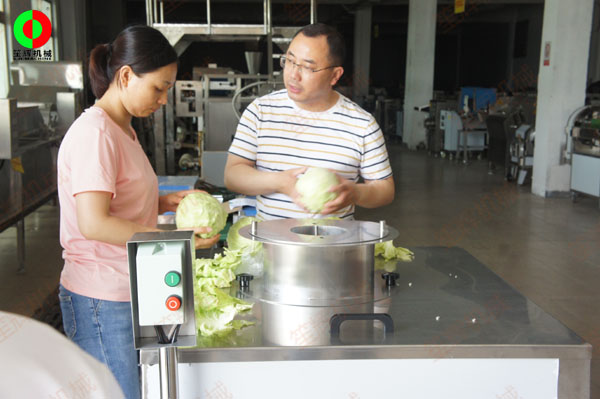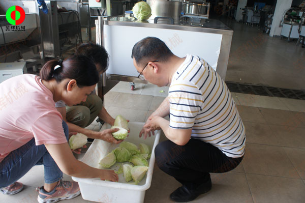 客戶親臨我司考察,并現場對果蔬等食品進行分瓣等加工處理,效果令其滿意并下單交付定金!笙輝機械專注于肉類、水產、果蔬類等食品前處理加工機械的研發生產、制造,滿足客戶各類中*央廚房生產線非標工程定制實施!