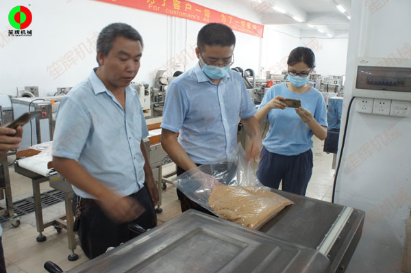 東莞客戶一行考察我司生產工廠,測試購買真空包裝機!