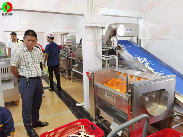 廣江湛江市HX大型凈菜加工配送中心,長(zhǎng)期為當(dāng)?shù)匾恍┚频?、餐館、學(xué)校飯?zhí)?、工廠(chǎng)飯?zhí)玫裙?yīng)大批量?jī)舨?,該客?hù)與我司簽訂生產(chǎn)設(shè)備供應(yīng)合作意向!公司按期經(jīng)營(yíng)實(shí)際需求和生產(chǎn)工藝,量身定制設(shè)計(jì)完整的蔬果分選、切割、去皮、清洗加工生產(chǎn)線(xiàn)或單機(jī)設(shè)備;排骨切丁、清洗等食品前處理加工機(jī)械。我司派遣工程技術(shù)人員到場(chǎng)指導(dǎo)安裝和使用培訓(xùn)!