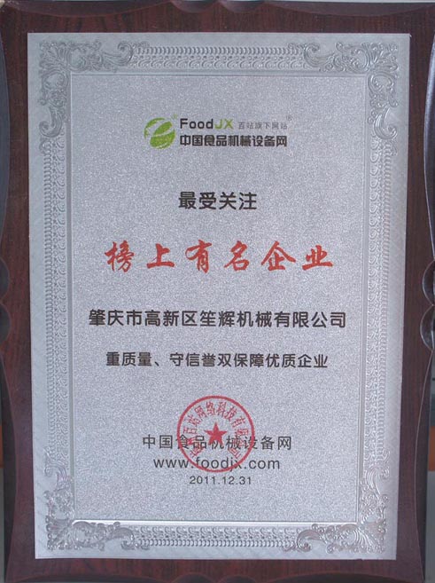 獲得中國食品設備網重質量、守信譽雙保障優*質企業