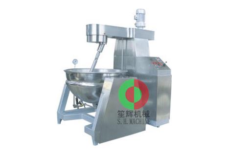 攪拌方式采用特殊的傾斜式行星傳動,使用的攪拌器與鍋體達到充分接觸,實現傳動公轉與自轉的不整數傳動比,確保鍋內無攪拌死角,物料攪拌均勻不粘鍋。傳動部位使用較先*進的傳動和密封結構,使傳動部分與鍋內潔凈、衛*生。采用變頻調速動力,運行更平穩。另本機采用液壓升降,翻鍋運料,免拆裝攪拌器,節省人力,降低勞動強度。