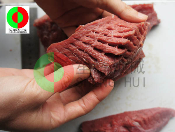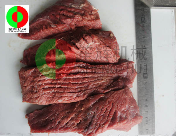 機(jī)器原理:通過帶齒刀組壓切肉塊,能放大肉片尺寸及松肉效果。