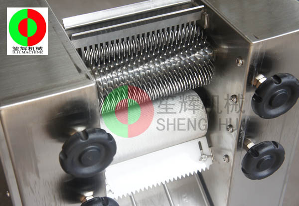 - 產品優勢: 用途:用于豬肉,牛肉,羊肉片增大,松開肉筋,使肉片賣相好,口感好。機器原理:1.通過上層刀組,不銹鋼帶齒壓輪,帶齒設計,能有效放大肉片尺寸及松肉效果。2.通過下層刀組,斷筋部分,能刺穿肉片,增強嫩化及松肉效果。