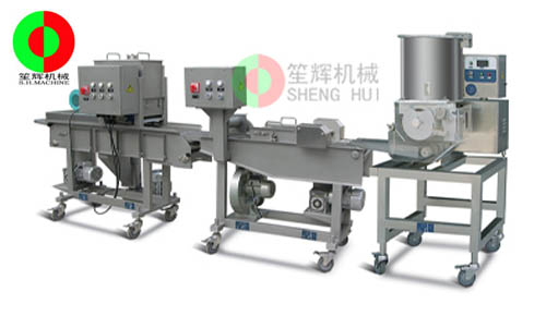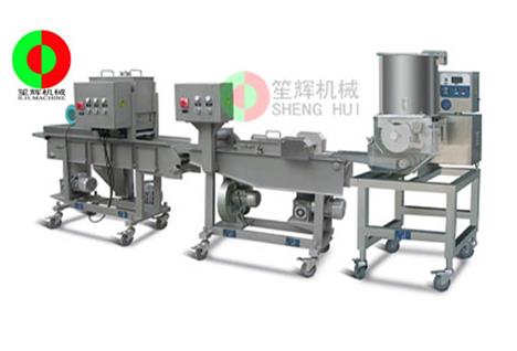 自動肉餅成型機生產線能自動完成肉餅成型,上漿,上粉,上面包屑等工序。通過更換 不同的模具能實現生產不同形狀的產品。整機采用不銹鋼材質制造,耐磨耐用,符合衛*生標準。適合制作漢堡肉餅、雞塊餅,魚餅,土豆餅,南瓜餅等等食品。生產線自動化程度高,操作簡單,清洗方便,性能穩定,可靠,適合肉類加工廠,餐飲行業,食品配送中心等單位使用。
