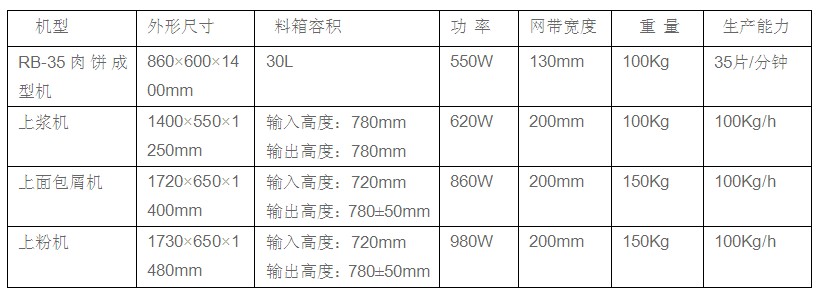 自動肉餅機/自動漢堡肉餅生產線 技術參數展示