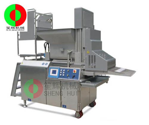 - 產品優勢: 大型自動成型機能自動完成肉的填充、成型、輸出等工序,可以和上漿機、上粉機、油炸機、蒸煮機、速凍機、包裝機組成全自動生產線。采用四螺桿送料裝置,減少對物料的剪切和損傷,具有產量大,效率高,質量穩定的優點。整機采用不銹鋼制造,美觀耐磨,符合衛*生標準,采用進PLC處理器,LCD觸摸屏操作,中英文操作界面,操作簡單易懂,帶故障自動報警系統。
