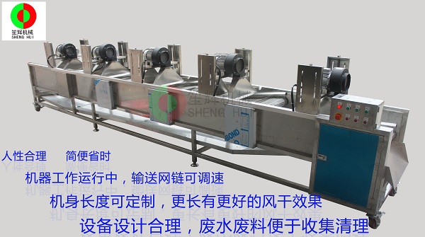 - 產品優勢: 適用于葉菜類蔬菜、各種瓜果的風干。適合凈菜加工場,大型食品配送中心,大型飯堂等團體使用。 *人性合理,簡便省時 *機器工作運行中,輸送網鏈可調速 *機身長度可定制,更長有更好的風干效果 *設備設計合理,廢水廢料便于收集清理