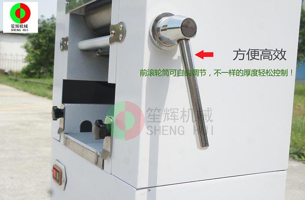 6、只需要調(diào)節(jié)把手即可平行移動壓面輥,防止面皮厚薄不一;