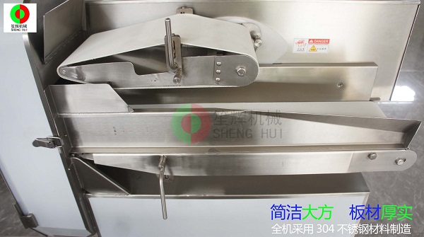 - 產(chǎn)品優(yōu)勢: 本SH-200加大型切菜機(jī),可切葉菜類,如長蔥,蒜苗,韭菜,芹菜,白菜,青菜等,也可切條狀瓜果,如蘿卜,黃瓜,辣椒,茄子,等等。可切片(厚薄度可訂做),切段切條(長短度可調(diào))。輸送帶速度和轉(zhuǎn)刀速度采用變頻器可調(diào),可單獨(dú)控制。一機(jī)多用,輸送帶加寬到200mm,產(chǎn)量更高,適度更廣。皮帶拆卸和安裝都很快捷方便,機(jī)器清洗和保養(yǎng)更容易。這種加大型切菜機(jī)適合大型食品加工廠,餐飲行業(yè),飯?zhí)茫惋嬇渌椭行氖褂谩?