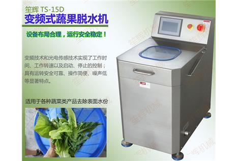 • 產品優(yōu)勢: TS-15D型全自動變頻式蔬菜脫水機適用于各種蔬菜類產品去除表面水份,是蔬菜加工行業(yè)快速脫去蔬菜表面水分較為理想的加工設備。