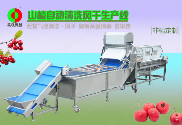 山楂清洗風干生產線,主要由提升機、內置網鏈氣泡清洗機、輸送風干機非標定制組合成實用的流水線,半全自動化生產過程,只需通過少量工人將山楂果放到提升機上,生產線則可以帶來每小時約1噸以上的產能,節省大量人力勞作,提高生產效率。