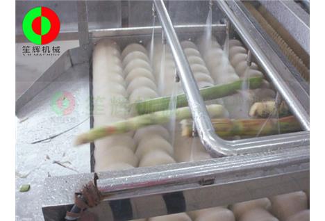 - 產品優勢: 甘蔗清洗機適用對各類型甘蔗的清洗,產量大,操作方便!具有以下特點: 1、可根據各種不同甘蔗的大小種類,調節上下層毛刷的間距,設置同時調速和分別調速。 2、可將臭氧發生器產生的臭氧注入水箱中,進行臭氧殺*菌。(附加功能) 3、毛刷上方裝有四排高壓水流噴射裝置,有*效清洗甘蔗表面粘連的泥沙雜質。